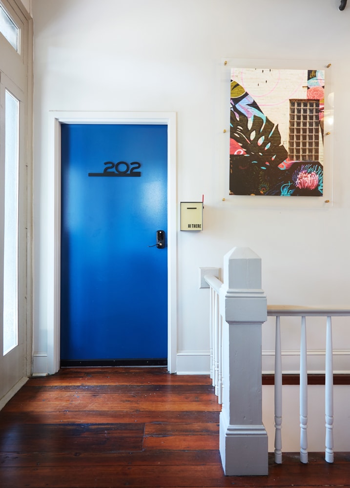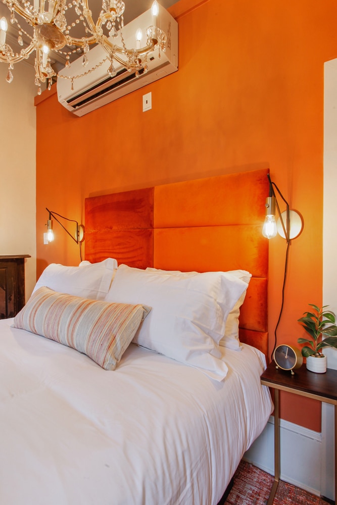 Step into this charming 2nd-floor suite, where unique interior design and cozy comfort blend seamlessly to create a memorable stay in the heart of Savannah. Your private apartment suite has its own entrance through common hallways and stairs, offering a peaceful retreat. The suite features a plush Queen bed, a work desk area, and stunning views of beautiful Crawford Square. The Insta-worthy bathroom boasts an oversized tile shower, while the original fireplace and plaster ceiling add historic charm. With its thoughtful design and cozy atmosphere, this suite is a favorite for those seeking style and comfort. Please note, access is via a beautiful staircase, as the historic building does not have an elevator.