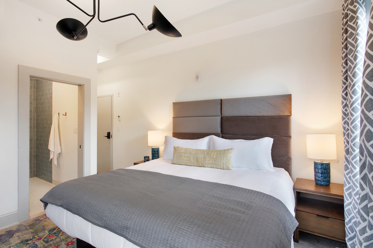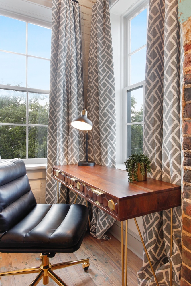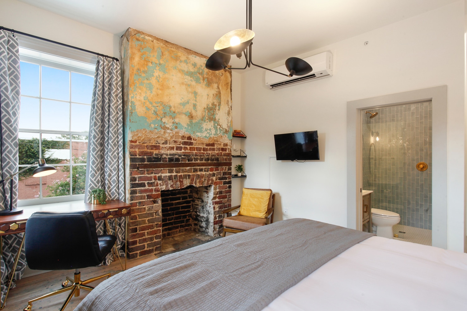 Third floor king suite with full bath, dedicated workspace and beautiful view of Crawford Square