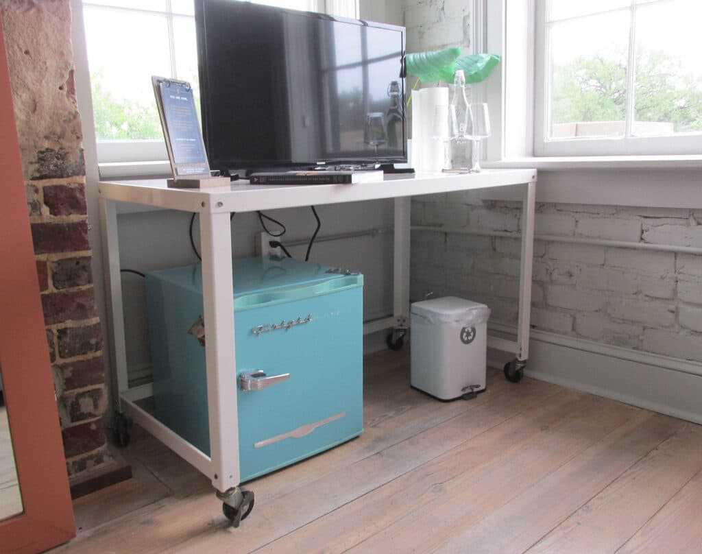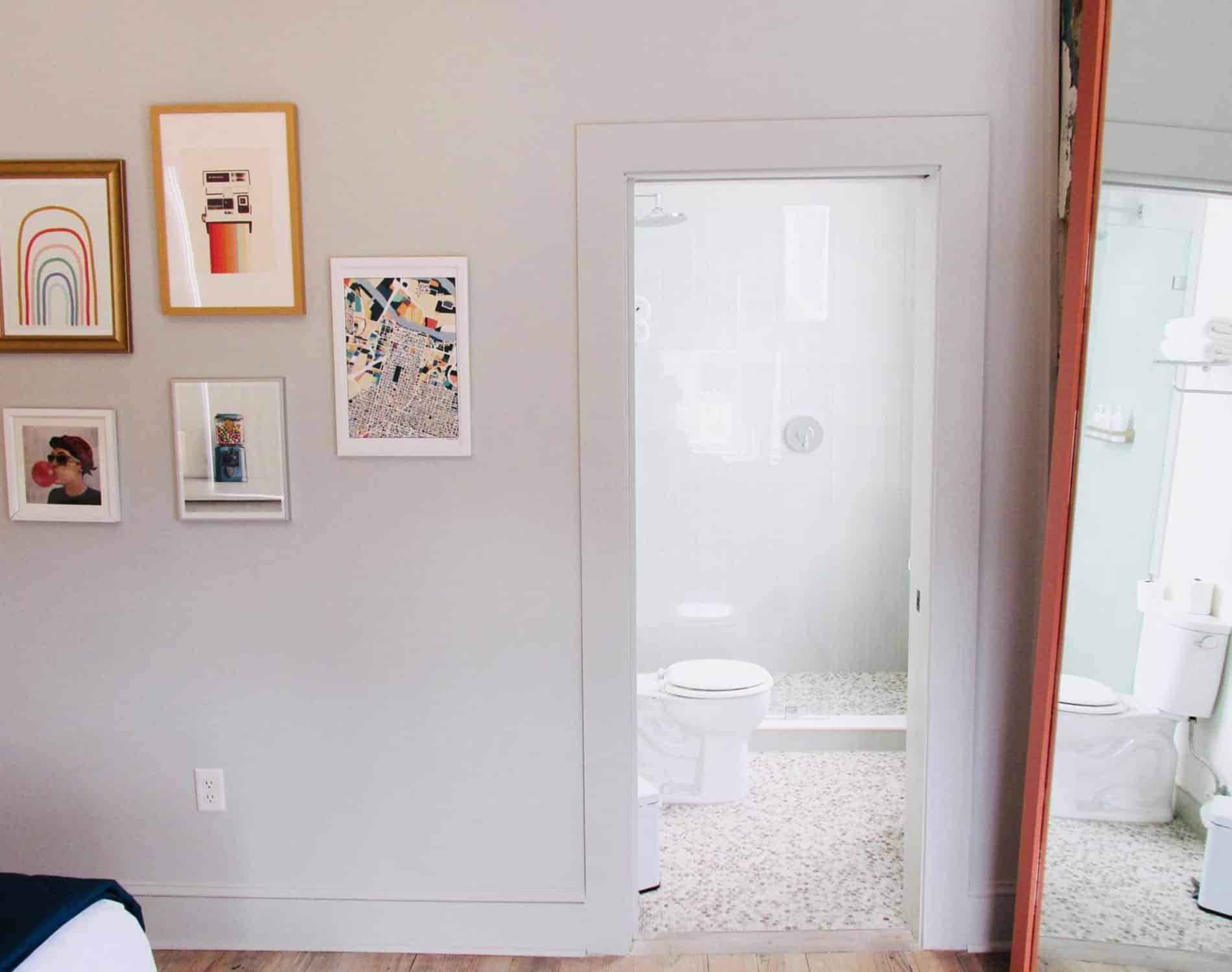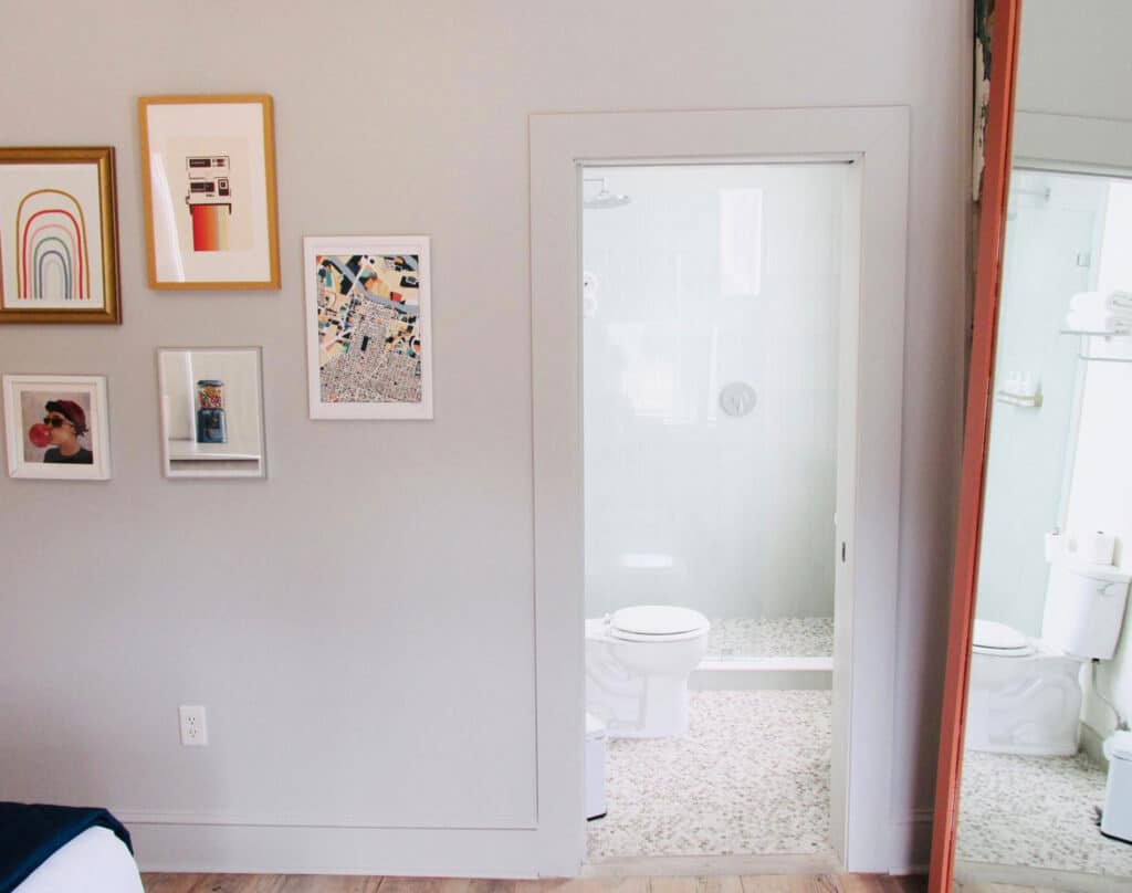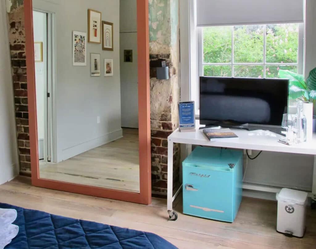 Escape to your private 3rd-floor suite, once the mansion’s Art Studio, offering a peaceful retreat with its own entrance through common hallways and stairs. Relax in a plush Queen bed designed for ultimate comfort, making it easy to unwind and enjoy a restful night’s sleep. The modern bathroom features a stunning shower, while original brick and plaster walls, along with unique interior design finishes, enhance the suite’s charm and character. Perfect for those seeking both comfort and style, this suite offers an inviting space to call home in the heart of Savannah. Please note, the suite is located on the 3rd floor of this historic building, and access is via a beautiful staircase. This private third-floor unit is accessible via two flights of stairs, as there are no elevators at the property. The room is located in the main tower and can be accessed through the main entrance off Houston St. or the courtyard off East McDonough St.